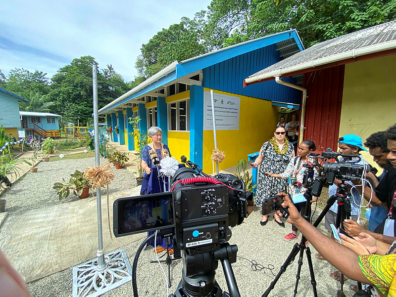 Doorstop at Mbokona Community High School, Honiara